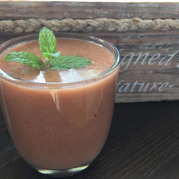 Dagens hälsosamma måltid – smoothie med örter och jordgubbar. Gott och enkelt.