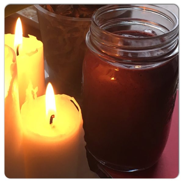 Just nu blir det mycket grönkål för min del. Det är ju så gott och hälsosamt. Dessutom fräscht grönt även på vintern. Här är en god bärsmoothie som jag avnjöt i tysthet i skenet av stearinljus.